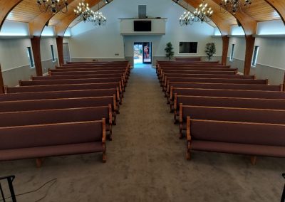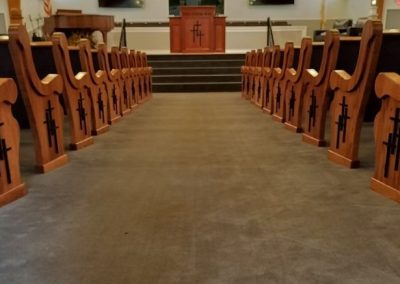 “The pews turned out great. They are absolutely gorgeous. Thank you so much for allowing the Lord to use you once again to help beautify His House. I invite you to look at the post on my FB page (Derek Farr) and see the comments. You have a wonderful team of guys. Brad, Roger, and Chris are all great guys and very professional. They done an outstanding job installing. I know they were very tired after traveling into the night and then getting up early to finish the journey from Oklahoma to east Central Alabama, but you couldn’t tell it by the way they worked. They didn’t stop the first day until late into the night and up early the second day to finish the job. I am absolutely blown away at the craftsmanship of the pews as well. Brad shared a little of your (Rex) testimony with me. I praise the Lord for what He has done in your life. Thank you again for allowing God to use you my brother.” – Derek Farr