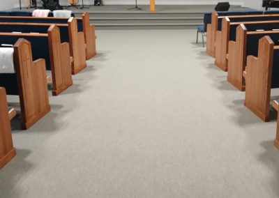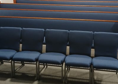 We are thrilled to showcase Living Water Baptist Church in Arnoldsville, GA! In mid-October, our installation team delivered and installed 11 of our signature 2005-style pews, each an impressive 16 feet in length. These pews are upholstered in luxurious Sherpa Indigo fabric, known for its exceptional quality and durability. The solid red oak frames are stained in rich English Chestnut and finished with a high-gloss lacquer, creating a beautiful and resilient finish that will last for years.