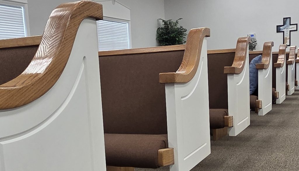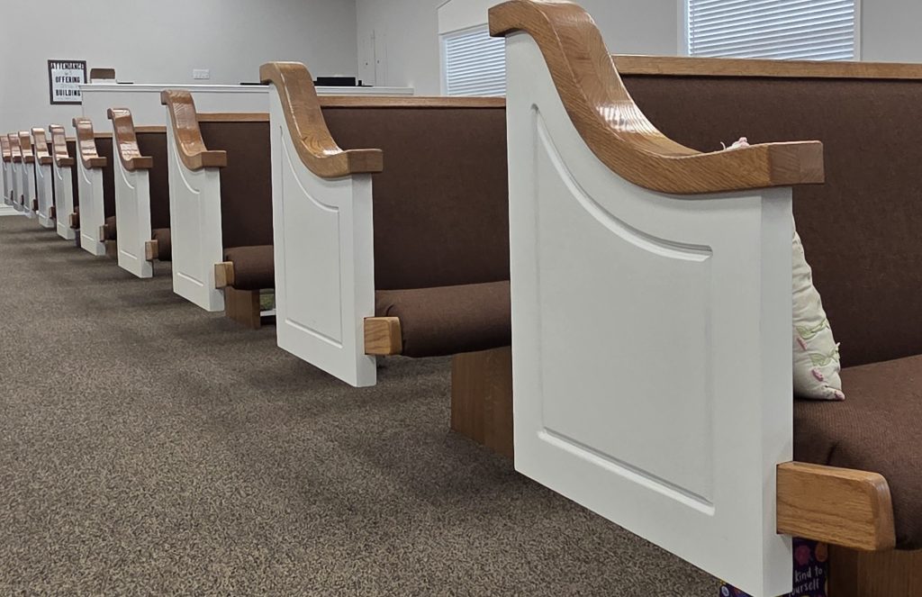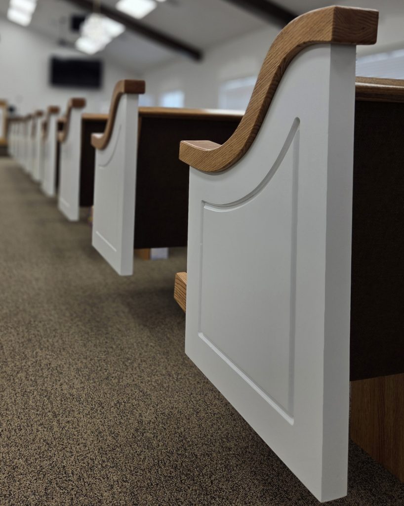 It’s always a special privilege when a church invites us back. The wonderful congregation in Jay at Heart of Praise Ministries reached out as their attendance continues to grow, requesting 8 additional pews to match their existing seating. Projects like this are a true testament to a healthy, flourishing ministry—and we’re grateful to play a small role in that journey.